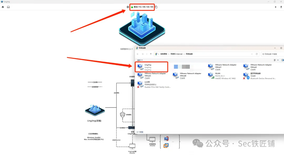 LingJing 是一款专为复杂网络环境渗透测试量身打造的桌面级本地网络安全靶场平台。支持在线下载和 免配置一键部署 靶机环境,平台内置路由 管理、监控打靶流量,快速启动靶机,满足从入门学习到红蓝队攻防实战的训练需求。后续版本将更新内置 Attacker 机器,进一步完善渗透测试打靶训练的完整流程,显著提升用户的训练体验和效率。本平台基于 Go+Fyne 构建图形界面,底层采用 QEMU 虚拟化技术,支持跨架构靶机启动。并且 能在 Mac M 系列芯片设备上启动 AMD64 架构靶机 ,确保在不同硬件环境下无缝开展测试与训练。