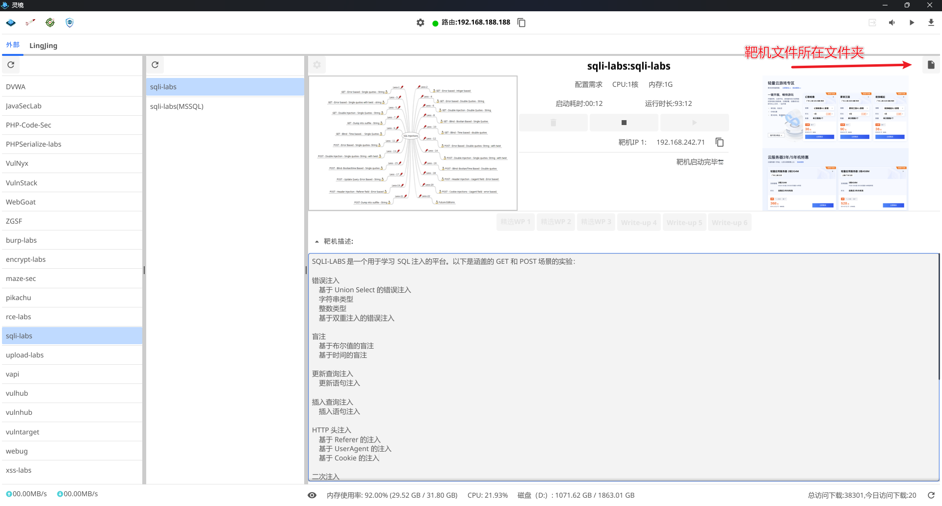 右上角的按钮时打开靶机文件所在的文件夹,如果没有下载靶场,文件夹里面是空的。
