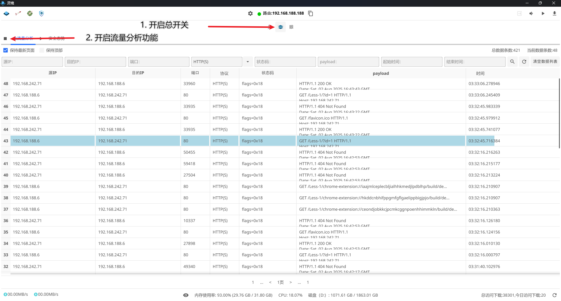 灵眼是LingJing平台的一个流量模块,目前有全流量分析和安全态势(待更新)两个子模块目前只有全流浪分析功能可以使用