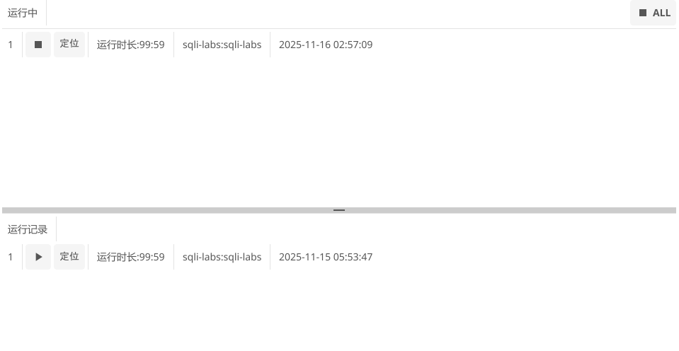 这个模块目前显示的是当前运行的靶场以及之前运行的一些记录 定位功能可以将当前靶机界面定位到运行中的靶机